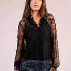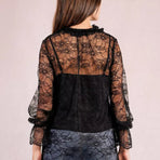 -Scollatura a V, impreziosita da una fascia in pizzo smerlato, nastro da annodare sulla scollatura