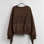 pullover a V in misto mohair molto caldo. Taglia unica, vestibilità over. Pizzo sul davanti .