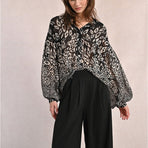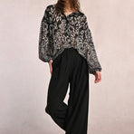Pantalone vita alta con tasche laterali e gambe fluida 100% poliestere
