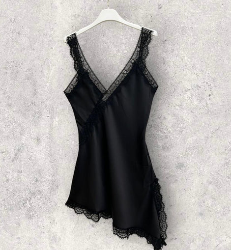 Abito sottoveste in 100% viscosa. Pizzo sulle spalle e sul fondo. Più lungo da una parte