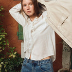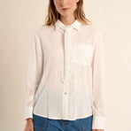 Camicia bianca con laccetto in pizzo -Maniche lunghe, polsini abbottonati -Colletto da camicia -Chiusura frontale abbottonata su tutta la lunghezza -80 % Viscose 20 % Lino