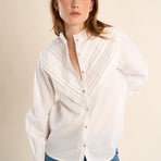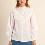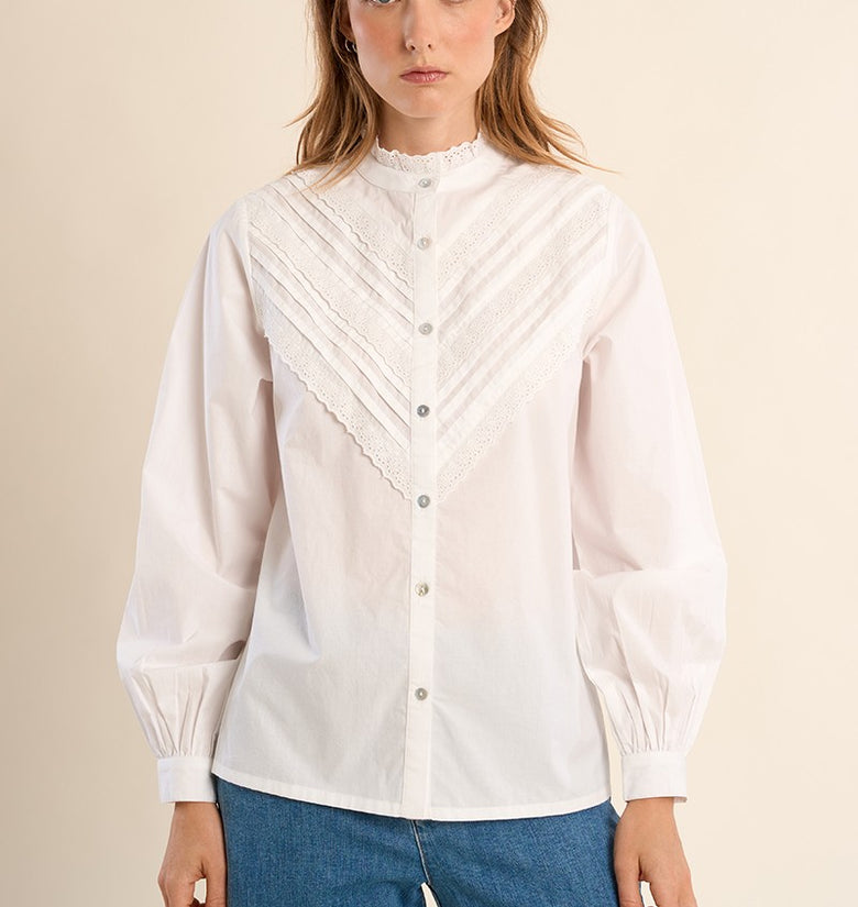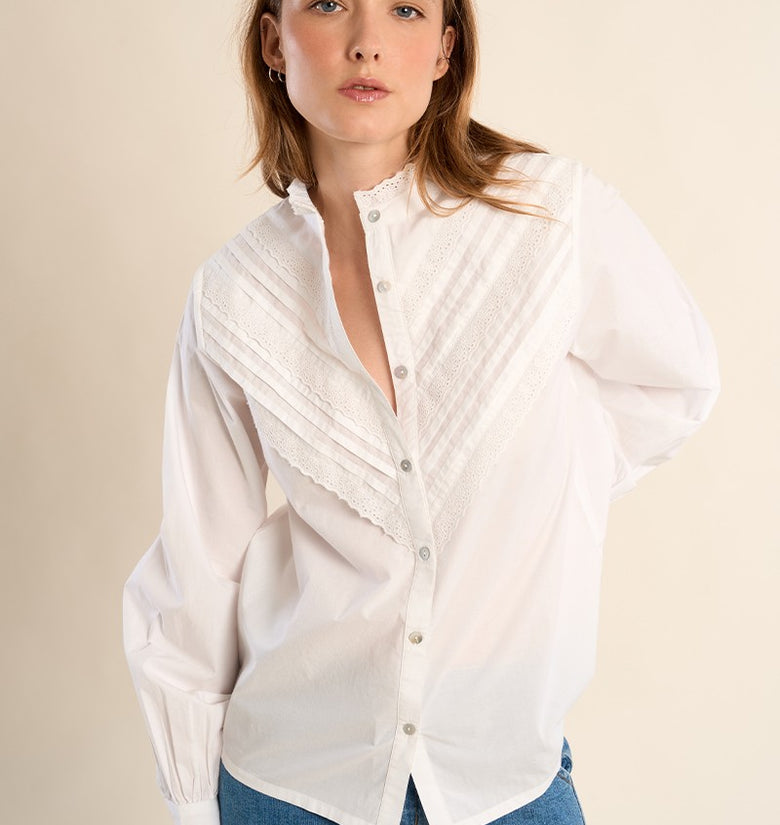 Camicia in cotone con pizzo -Vestibilità dritta -Maniche lunghe con bottoni sui polsini -Collo alla coreana dentellato -Eleganti strisce di pizzo sul petto.100% COTONE