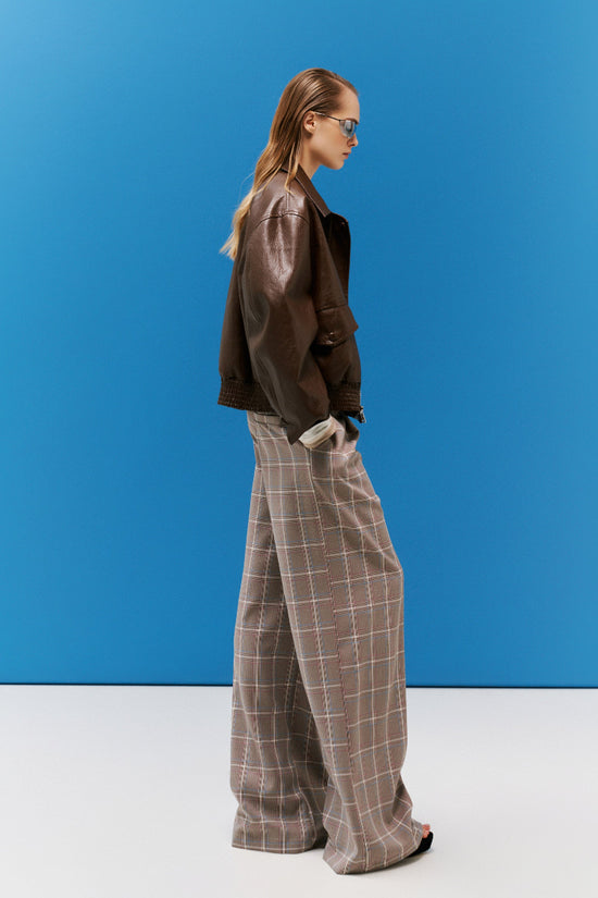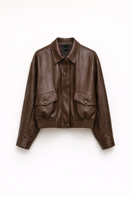 Giacca donna realizzata in eco-pelle.Colletto classico a punta.Applicazione tasche con bottone.Elastico in vita. Fodera interna.Vestibilità regolare, disponibile in taglia UNICA.