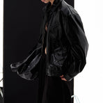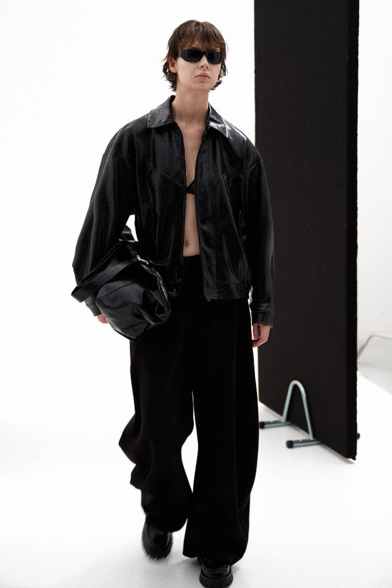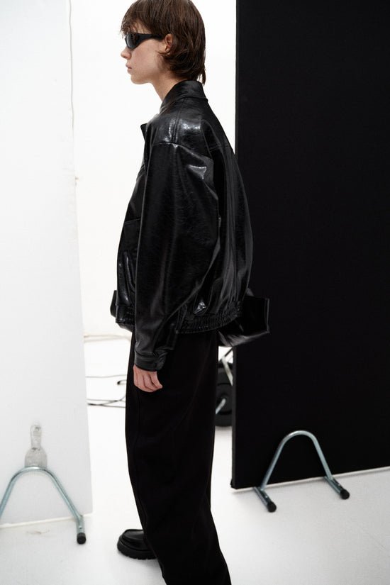 Giacca realizzata in eco-pelle.Presenta collo a revers e tasche anteriori.Chiusura frontale con cerniera e bottone.Orlo elasticizzato.Vestibilità regolare, disponibile in taglia S/M, M/L.