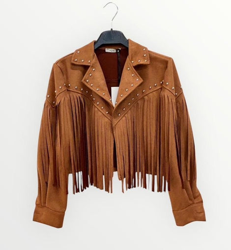 Giacca stile boho con frange e borchie