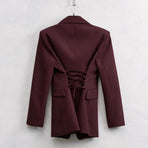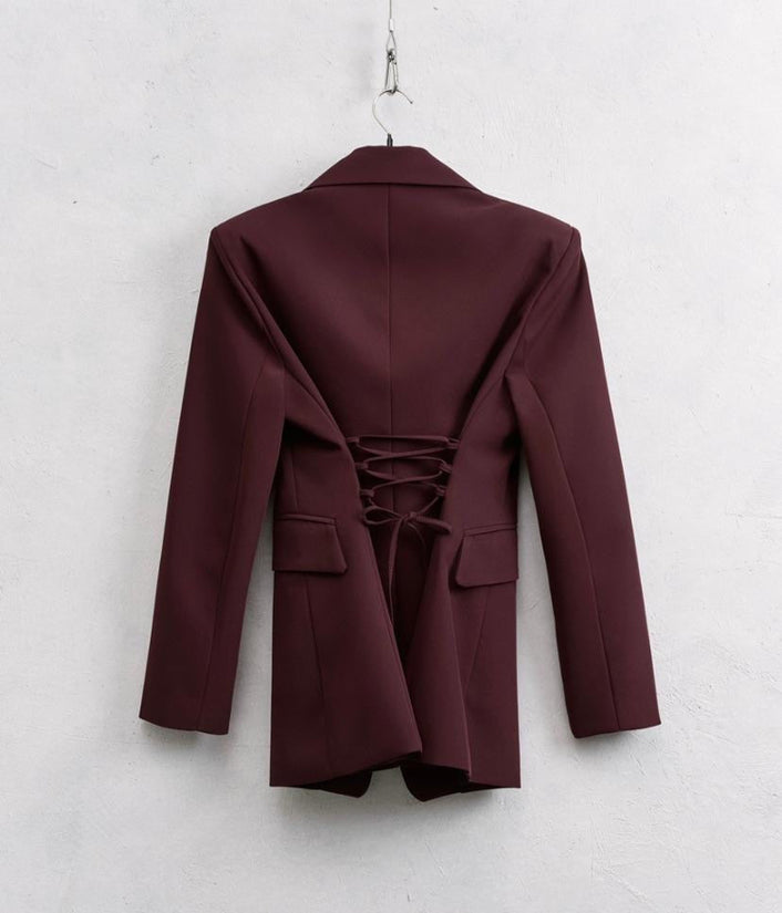 Giacca con spalline, bottoni come chiusura in vita. Laccio dietro per stringere la giacca.