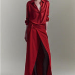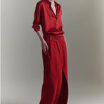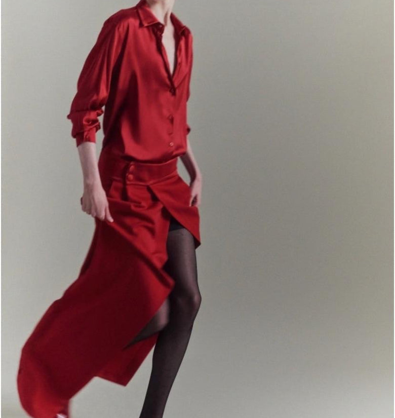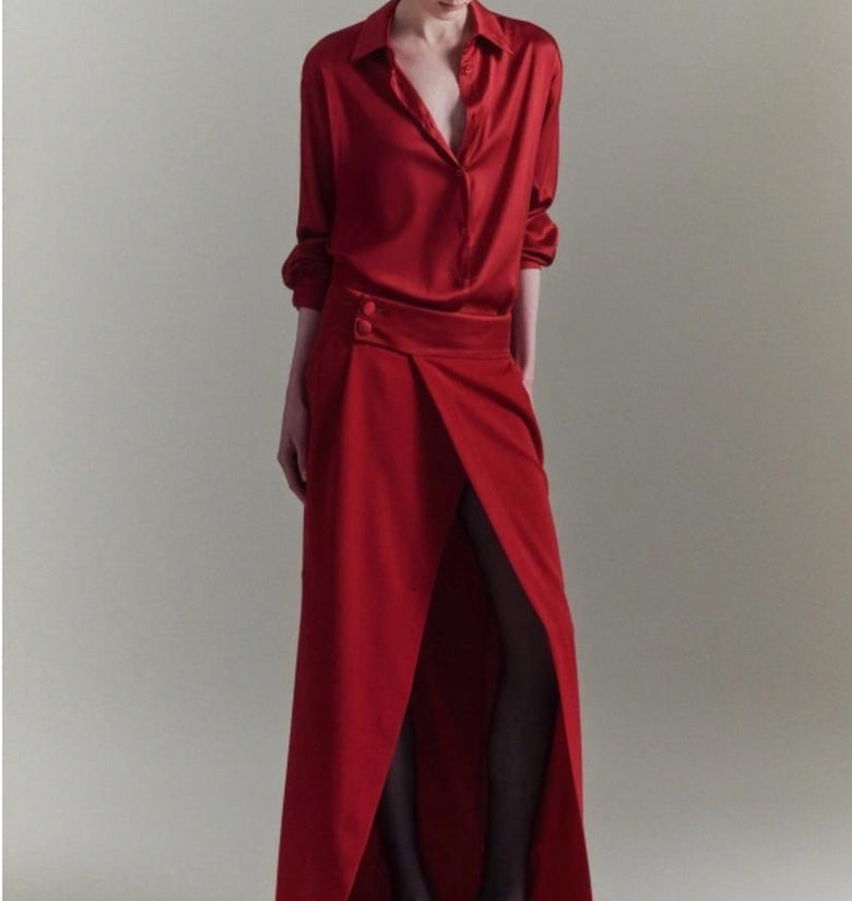Gonna donna lunga rossa. Perfetta per le feste. vita alta con spacco sul davanti. Chiusura a portafoglio con bottoni laterali. 97% viscosa 3%elastan