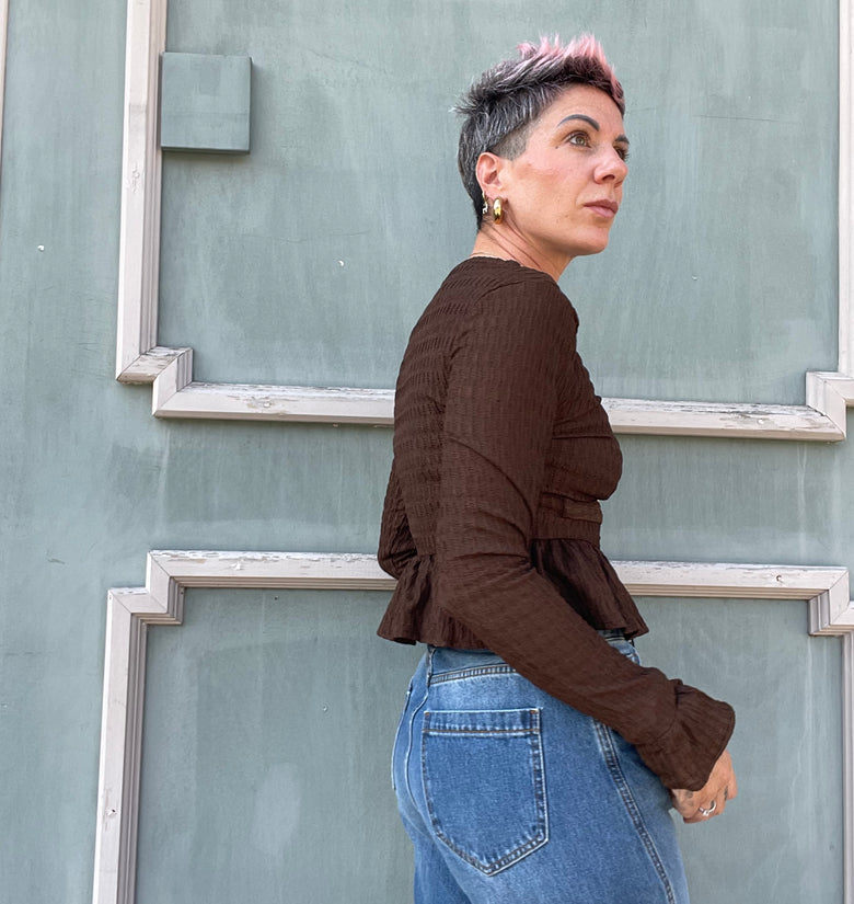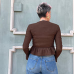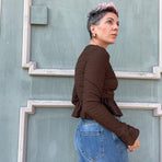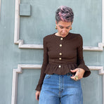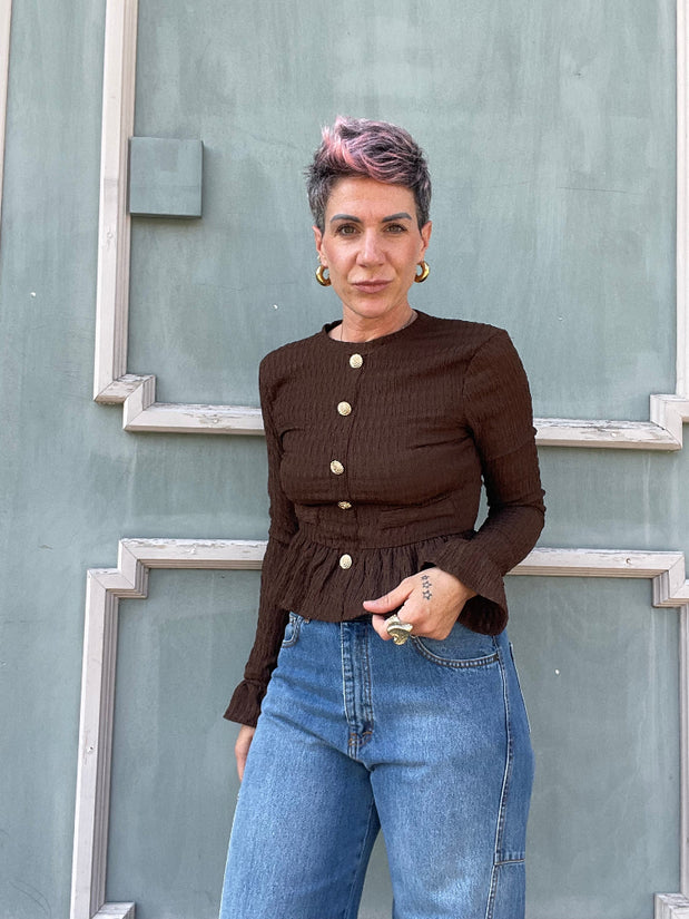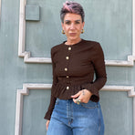 Maglia con frappa sul polso e sul fondo. 5 bottoni sul davanti. taglia unica, veste massimo una 42