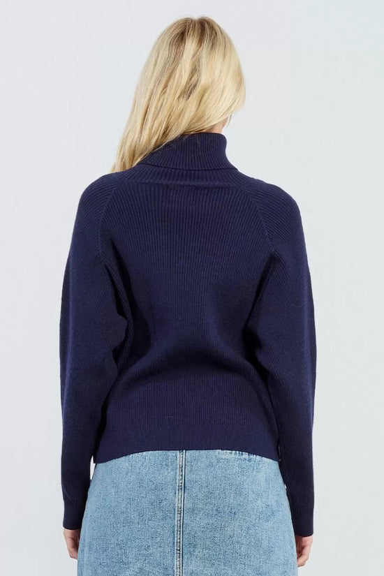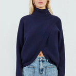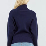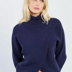 "-Maglione lavorato a maglia -Maniche lunghe -Ampio collo alto -Pannello frontale doppiopetto -Taglio corto al centro davanti e più lungo ai lati -Colletto, polsini e bordi a coste rifiniti