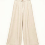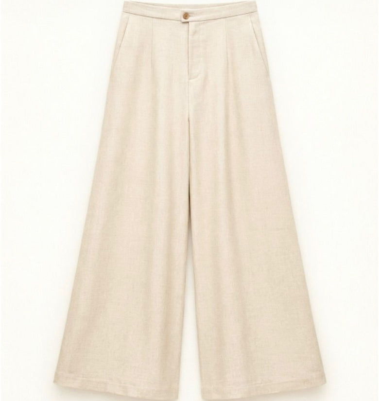 Pantalone donna in misto lino, vita alta, con pinces sul davanti, gamba lenta e tasche laterali. 80% viscosa 20% lino