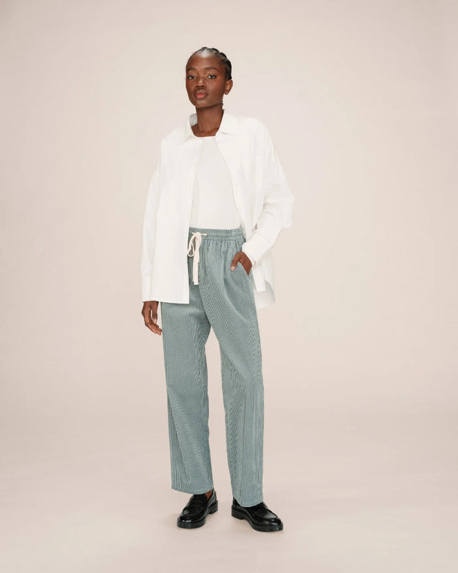 - Pantaloni in velluto a coste- Taglio dritto, gamba larga- Vita media- Vita elasticizzata con coulisse- Tasche all'italiana sul davanti