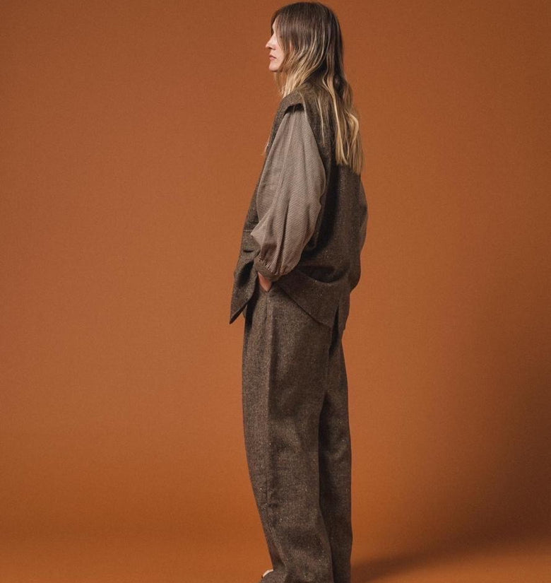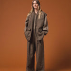 Pantalone vita alta, tasche laterali, veste over. 100% POLIESTERE