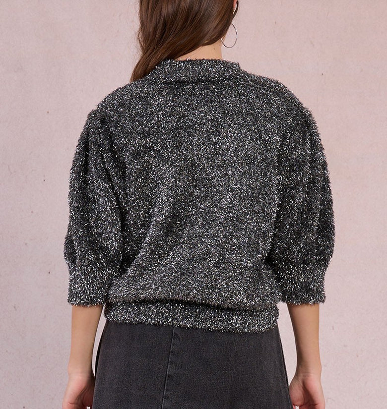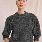 -Maglione lavorato a maglia testurizzato -Colletto MEDIO -Manica palloncino a 3/4-Vestibilità dritta-Spalle arricciate -Colletto, polsini e fondo capo a coste