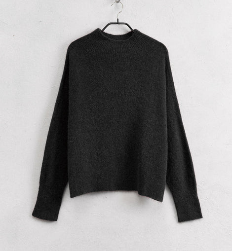 Maglia basic a maniche lunghe.Scollo leggermente alto.Vestibilità regolare, disponibile in taglia UNICA.38% POLIAMMIDE32% ACRILICA27% BABY ALPACA3% ELASTAN