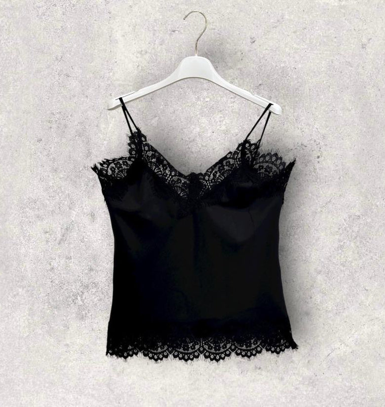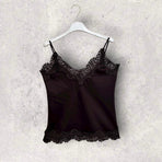 Abbigliamento donna. Top in pizzo in misto viscosa. Perfetta come sotto giacca. Completa il tuo look con gonna in paillettes e giacca over .