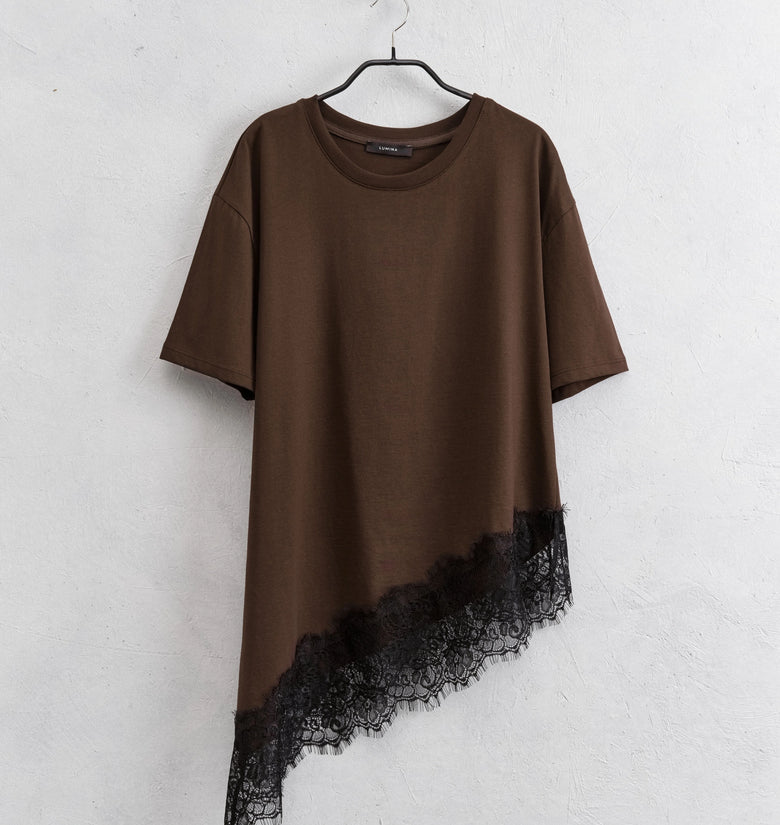 T-shirt realizzata in 100% cotone.Linea asimmetrica e collo rotondo.Dettaglio orlo rifinito in pizzo.Vestibilità oversize, disponibile in taglia UNICA.